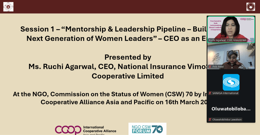 Ms. Ruchi Agarwal, CEO, National Insurance VimoSEWA Cooperative Limited, was a speaker in Session 1 – “Mentorship and Leadership Pipeline: Building the Next Generation of Women Leaders – CEO as an Enabler,” conducted by the International Cooperative Alliance – Asia and Pacific on 16 March 2026.