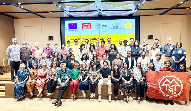Ms. Ruchi Agarwal, CEO of VimoSEWA, and Ms. Mirai Chatterjee, Director of SEWA Social Security and Chairperson of SEWA Cooperative Federation, were speakers at the two-day dialogue “Towards ReGenerative AI: Frames for Inclusive, Indigenous, and Intentional Innovation,” organized by IT for Change in partnership with Friedrich Ebert Stiftung, held from 30 October to 1 November 2025 in Bengaluru.