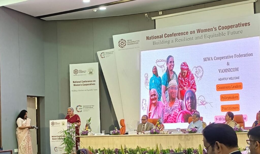 Ms Mirai Chatterjee, Director of SEWA Social Security and Chairperson of SEWA Cooperative Federation, participated as a speaker in the National Conference on Women’s Cooperatives, co-hosted by SEWA Cooperative Federation and VAMNICOM, on 9 and 10th June, 2025, in Pune, Maharashtra.